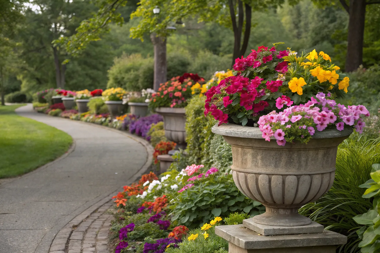 Use faux stone planters for a lightweight yet elegant addition to your garden. They offer the grandeur of stone without the heavy lifting!
