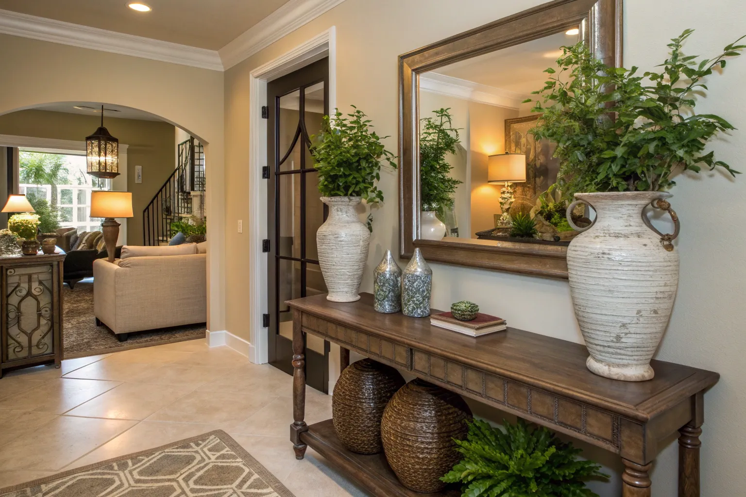 Add a console table to your entry for both style and function. It’s the perfect spot to display decorative accents like vases and baskets, which I’ve found add a personal touch to any space.