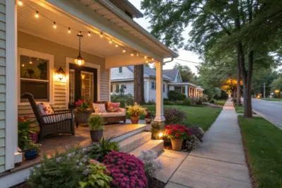 Outdoor lighting can transform your porch into a cozy retreat. Try placing lanterns or string lights to highlight architectural features and guide guests to your door.