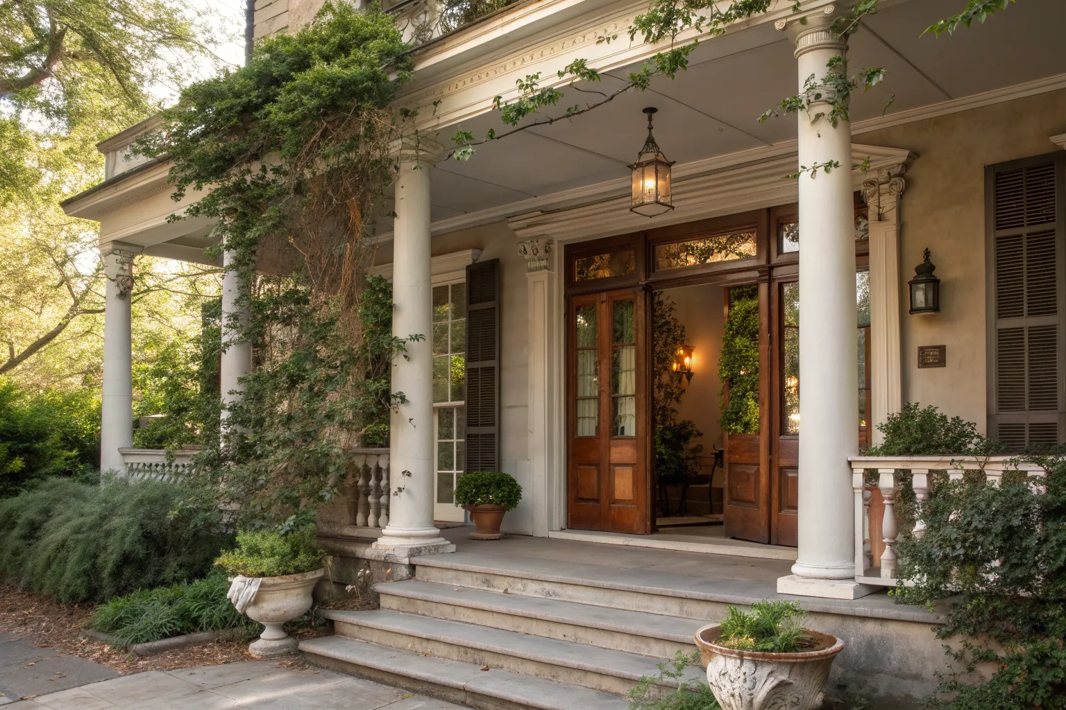 - Classical Outdoor Pillar Lighting: Illuminate your portico with elegant lighting fixtures, enhancing evening ambience and architectural beauty.