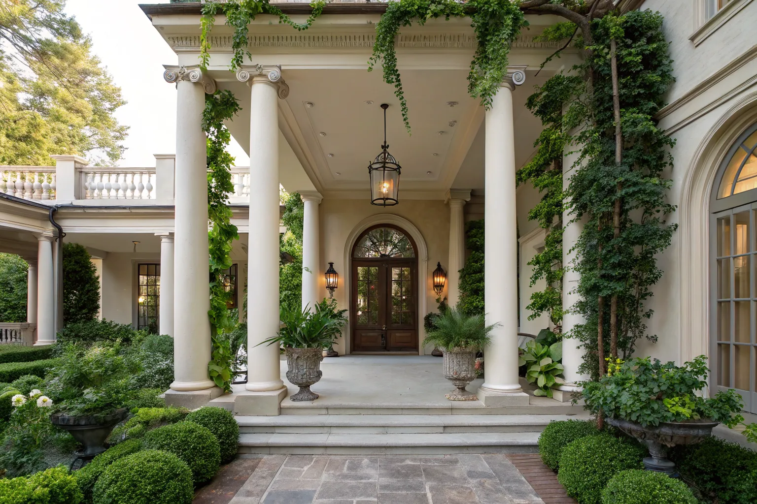 - Decorative Seasonal Garlands: Wrap your portico columns in vibrant garlands for a lush, festive look all season long.