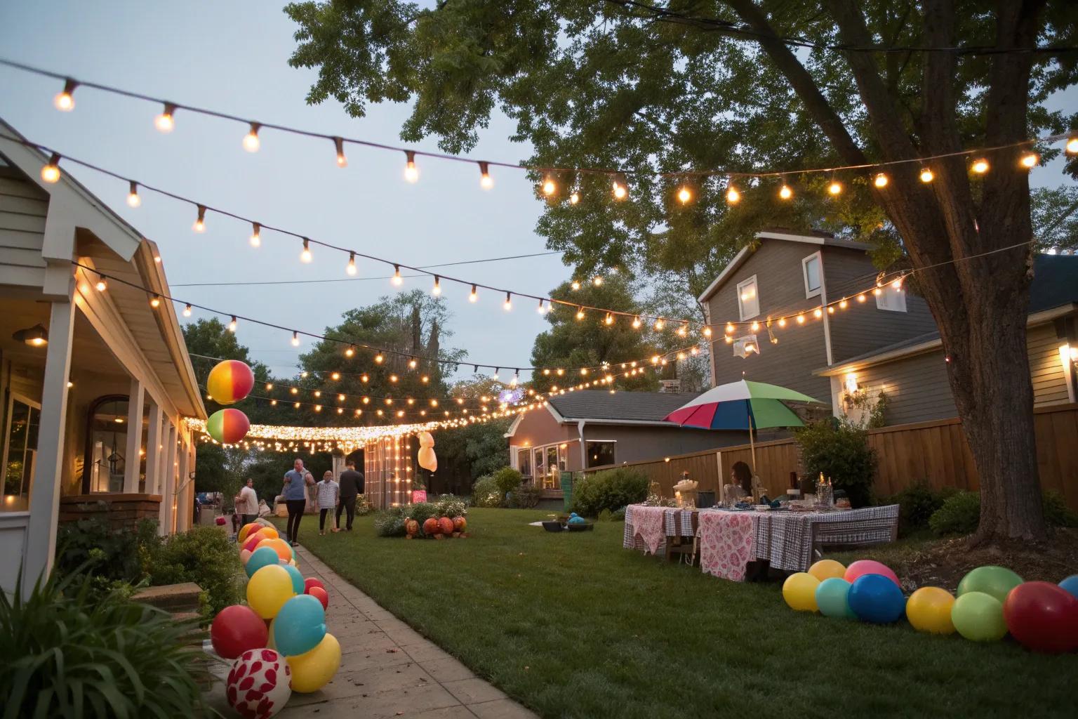 Transform your yard with glow sticks and neon decorations for a nighttime glow party. This unexpected twist will delight guests and keep the party glowing!