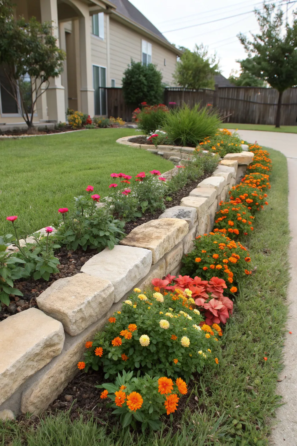 - Natural Stone Garden Edging: Enhance your flower bed with sleek natural stones, offering durability and a classic look.