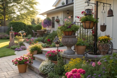 Using wooden crates or vintage furniture as plant stands can add a rustic charm. I’ve seen this style work wonders in creating a warm, inviting garden atmosphere.