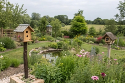 A decorative birdhouse can double as art and shelter for birds. My clients often choose unique designs that add personality to their gardens.