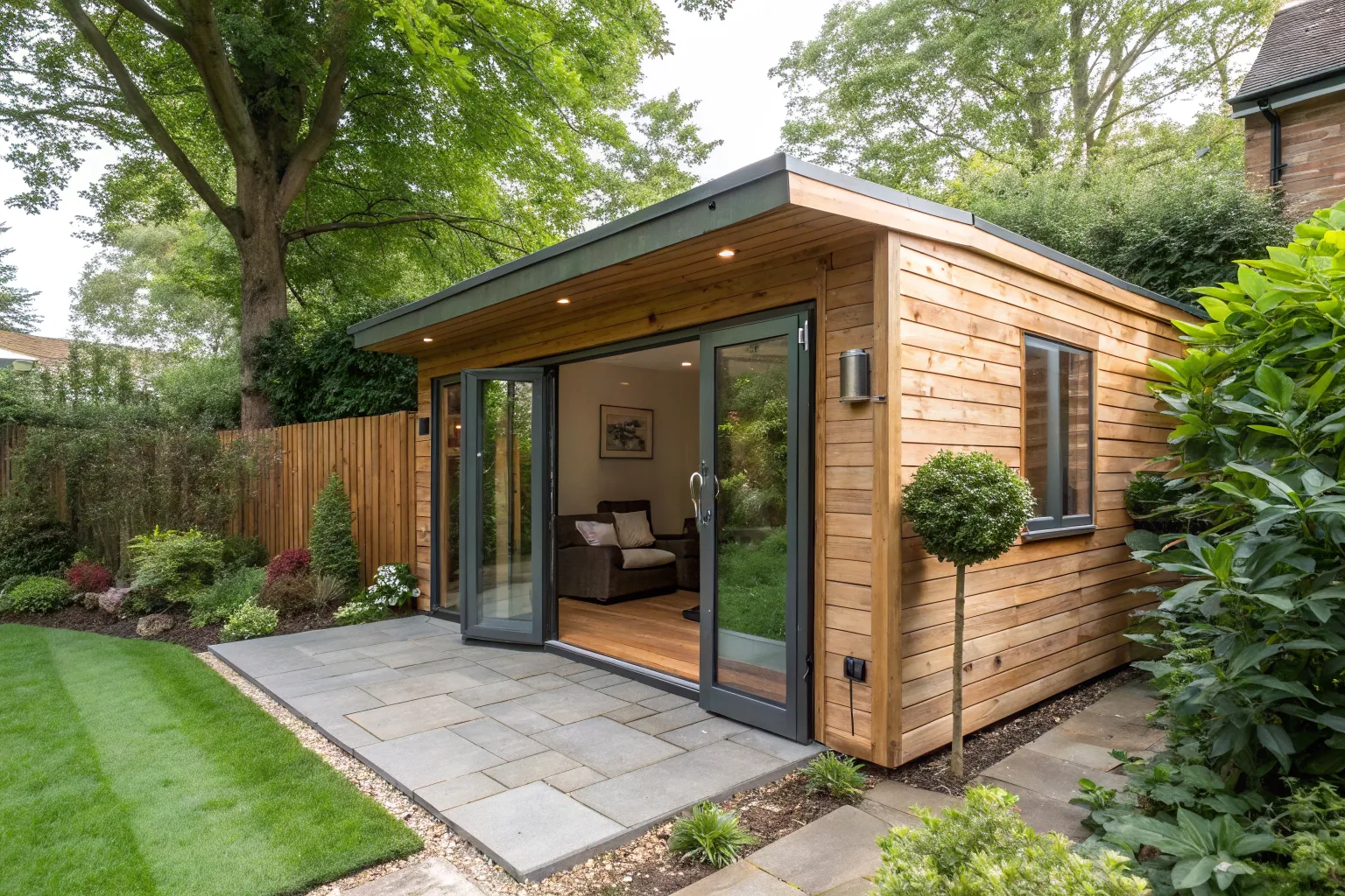 Turn your garden man cave into a home office with ergonomic furniture and natural lighting. It’s a productive escape from household distractions.