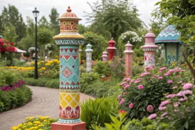 Add an artistic flair with mosaic tile posts. These can be adorned with colorful tiles for a Mediterranean vibe, making them a standout feature in any garden.
