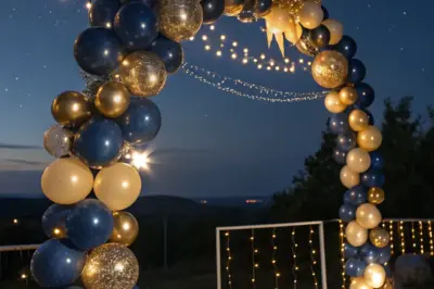 Create a celestial theme with midnight blue and gold balloons to mimic a starry night. Add some twinkle lights for an extra magical touch.