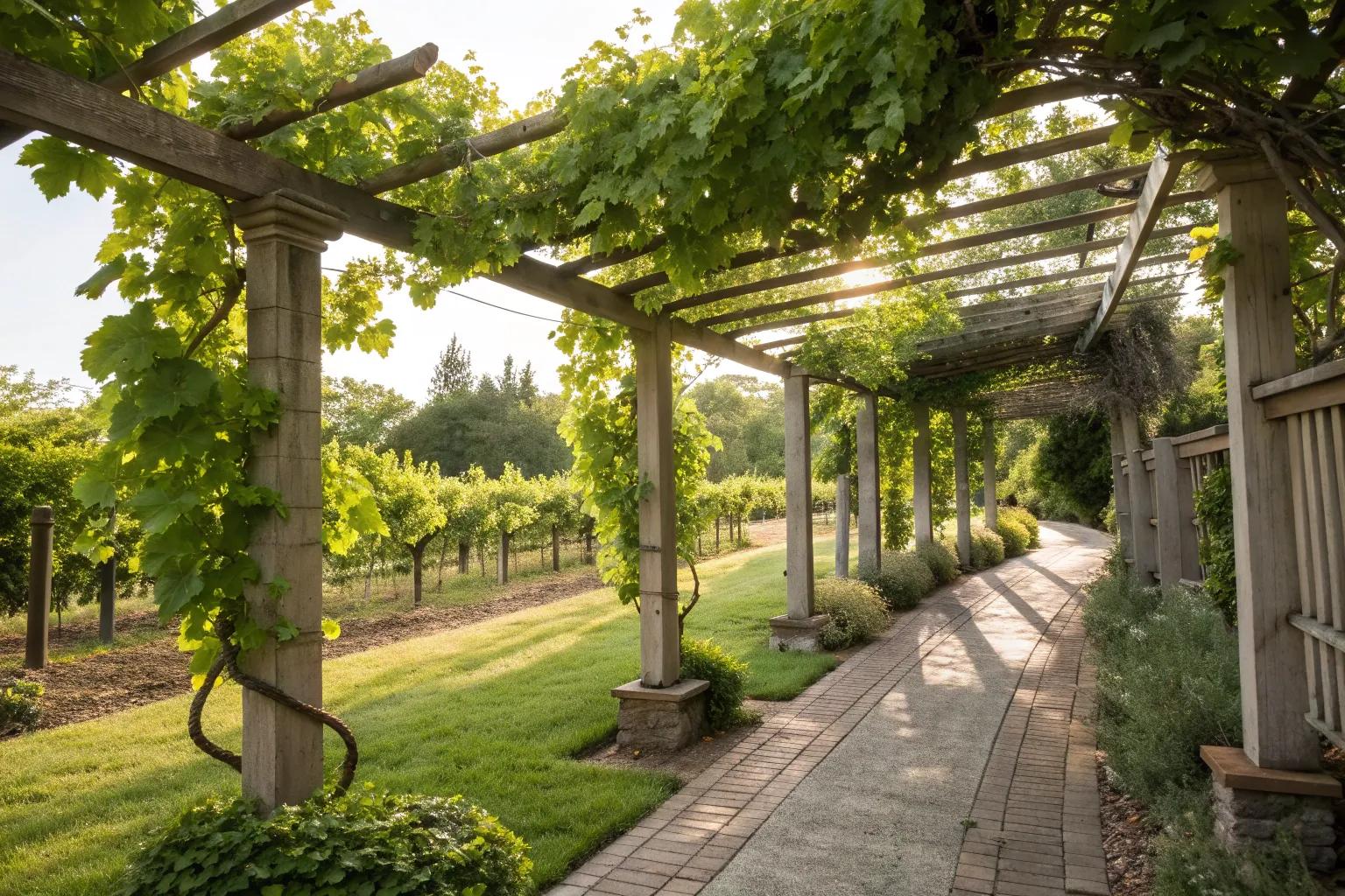 Combine elegance with durability by using stone pillars to support your grapevines. They create a majestic feel in any garden setting.