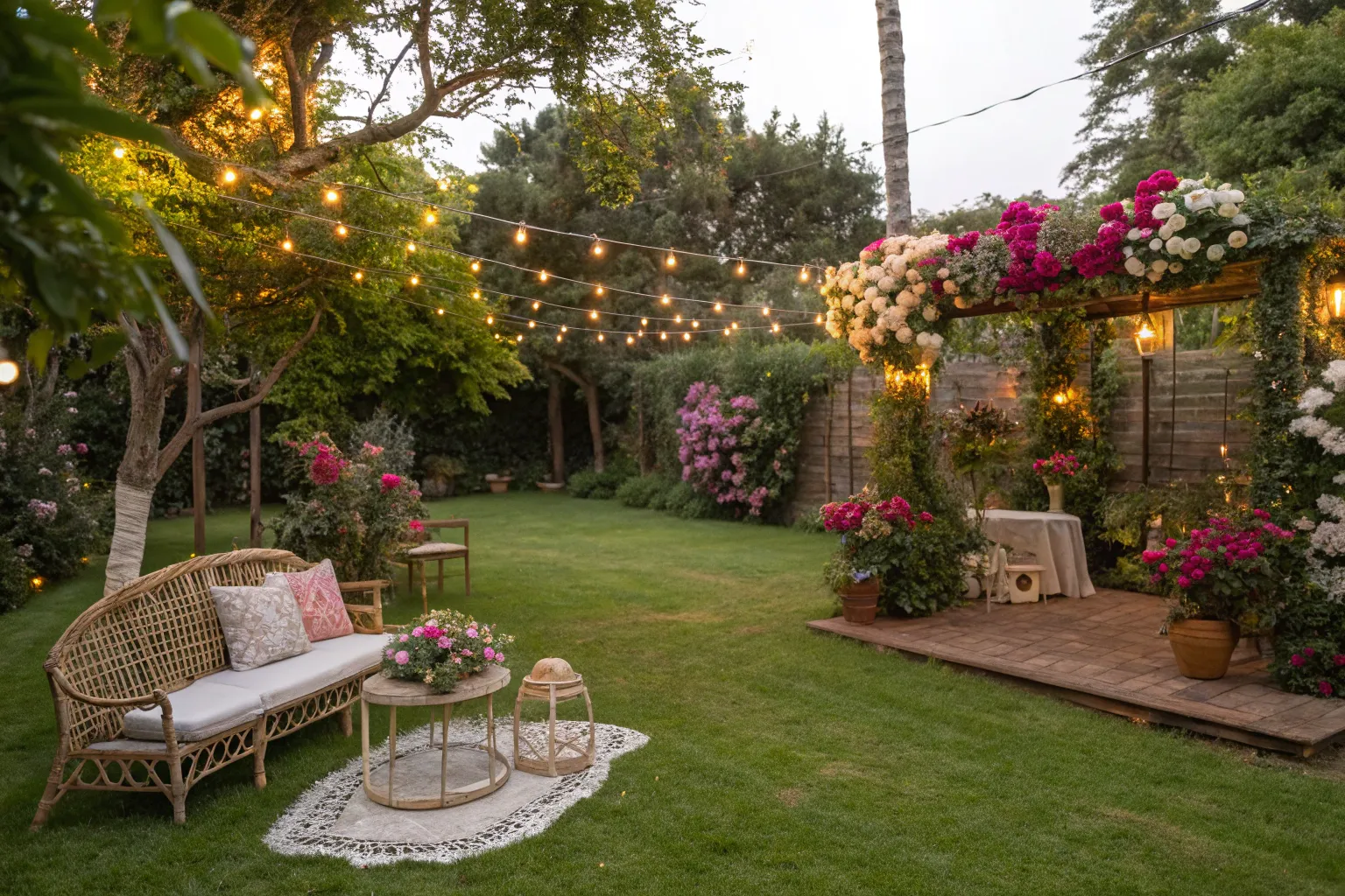 Add a magical glow to your backdrop with fairy lights. They create a dreamy ambiance, perfect for evening events.
