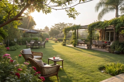 Imagine a comfy seating nook nestled in a patch of grass, perfect for morning coffees or evening reads. It’s a simple idea but adds a whole new vibe to your patio.