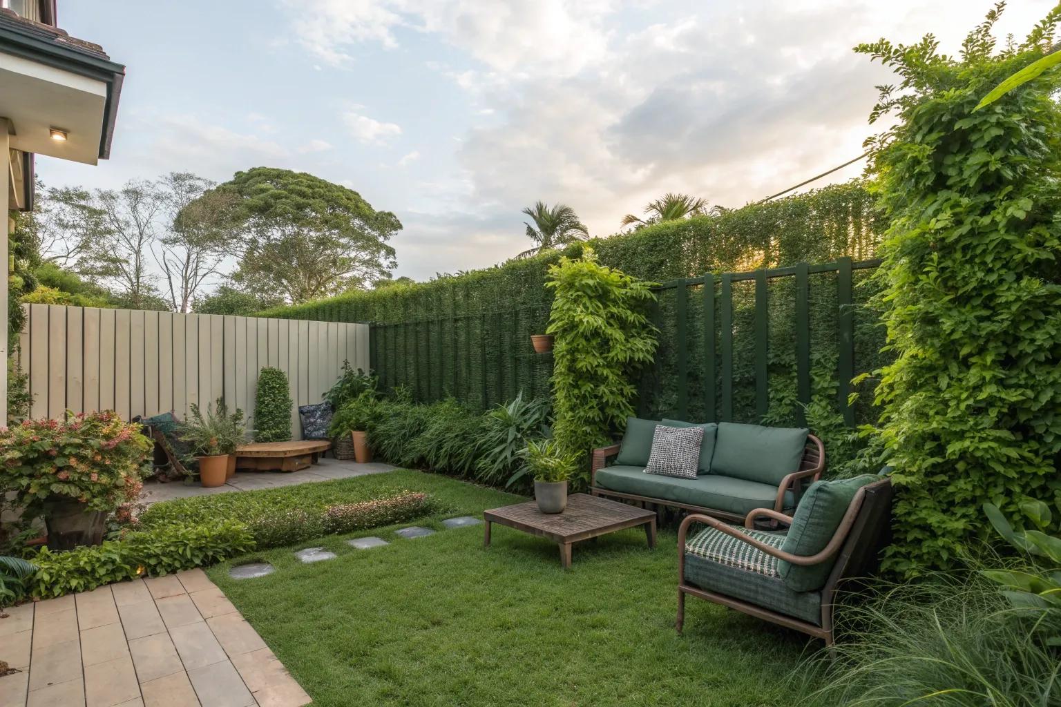 Use layered planting to add depth and richness to your green fence. By combining tall and short plants, you create a multi-dimensional effect that’s always a hit in my garden designs.