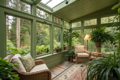 - Nature-Inspired Abstract Paintings: Incorporate abstract art with green hues to bring modern sophistication to your sunroom decor.