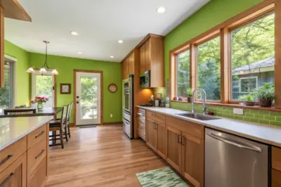 - Vibrant Green Wall Paint: Transform your kitchen with vibrant green paint, adding energy and style instantly.