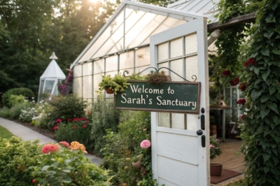 Give your greenhouse a personal touch with a custom family name sign. Clients often tell me how this makes their space feel truly theirs.