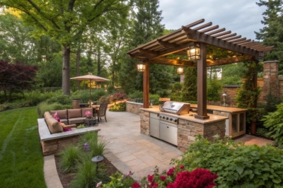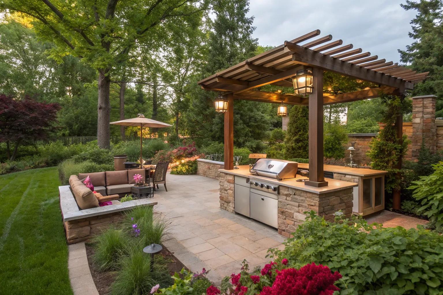 Add a pergola to your grilling area for a touch of elegance and much-needed shade. I’ve found that it not only defines the space but also makes the whole area feel cozy and inviting.
