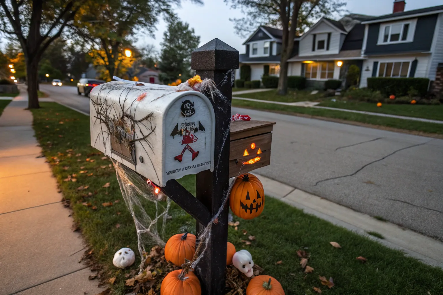Adorn your mailbox with vampire fangs and a black cape for a blood-curdling effect. It’s a fang-tastic way to add some Halloween drama.