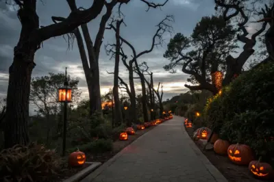 Line your walkway with a series of glowing pumpkins to create a warm, inviting glow that guides guests to your door. In my experience, mixing carved and uncarved pumpkins adds depth and interest.
