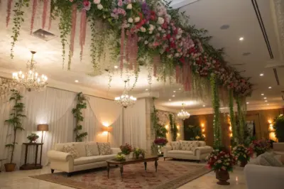 Transform enclosed spaces like tents or gazebos by suspending flowers from the ceiling. I’ve seen this done beautifully with fairy lights intertwined, giving a magical touch to any evening event.