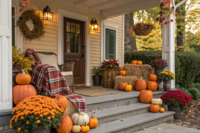 - Decorative Fall Wreaths: Welcome guests with a vibrant fall wreath that perfectly complements your seasonal porch setup.