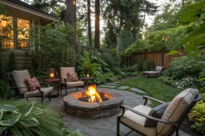 Create a fire pit with built-in seating for an all-in-one gathering spot. This idea maximizes space and ensures everyone has a comfy spot around the fire.