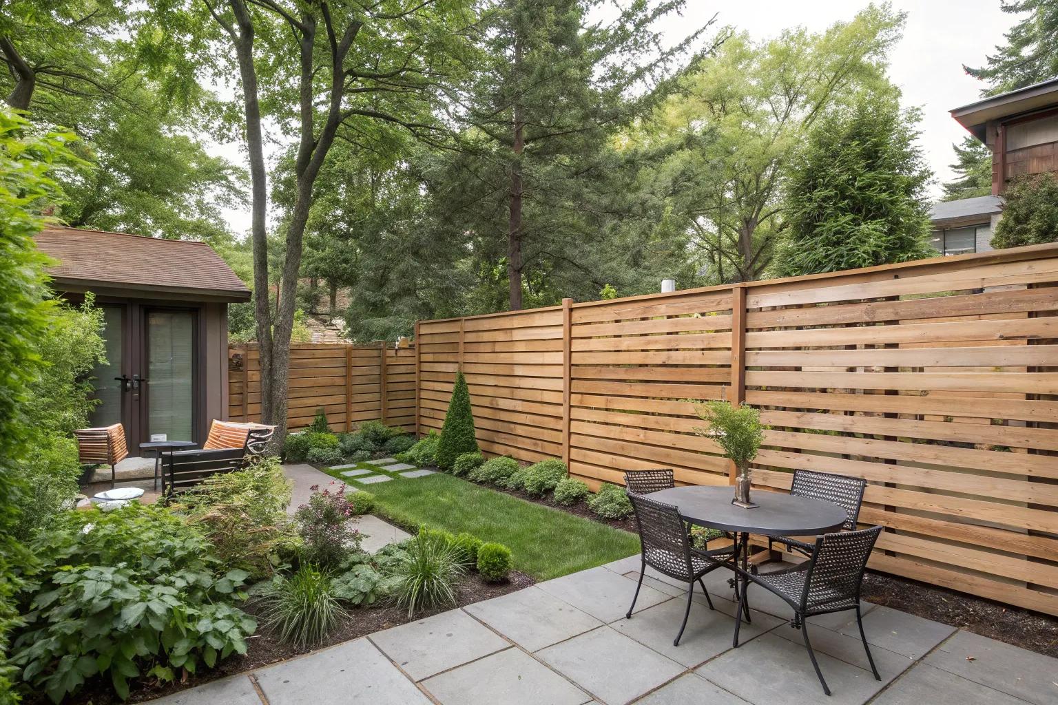 - Horizontal Wood Fence Panels: Create a stylish private retreat using horizontal wood fence panels for enhanced privacy.