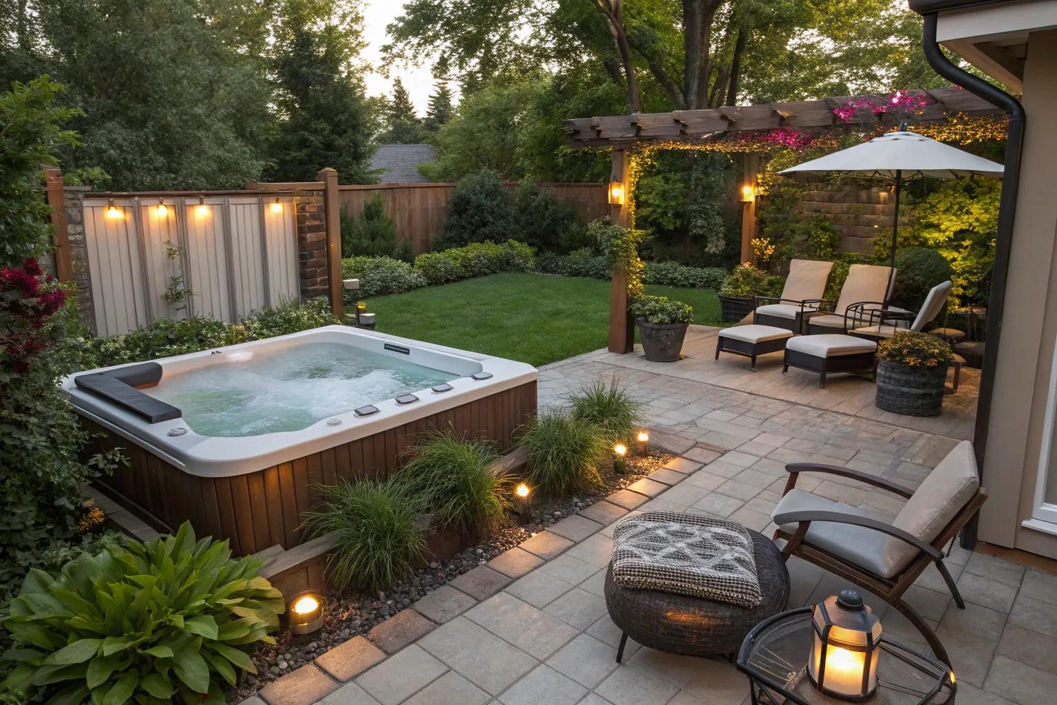Use privacy screens or hedges to create a secluded space around your hot tub. I find peace in my private nook away from prying eyes.