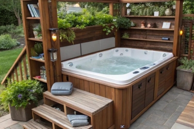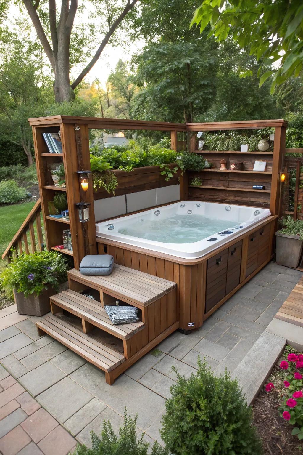 - Outdoor Wooden Privacy Shelf: Enhance your hot tub experience with a stylish privacy shelf. Store essentials while enjoying seclusion.