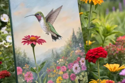 Capture the movement of a hummingbird in mid-flight using bold brush strokes and vivid colors. This approach creates a sense of energy and life on the canvas.