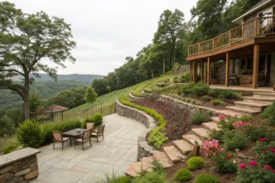 Terraced levels are a game-changer for sloped patios, providing multiple flat spaces for different activities. I once helped a client transform their steep backyard into a tiered paradise, and it completely changed their outdoor living experience.
