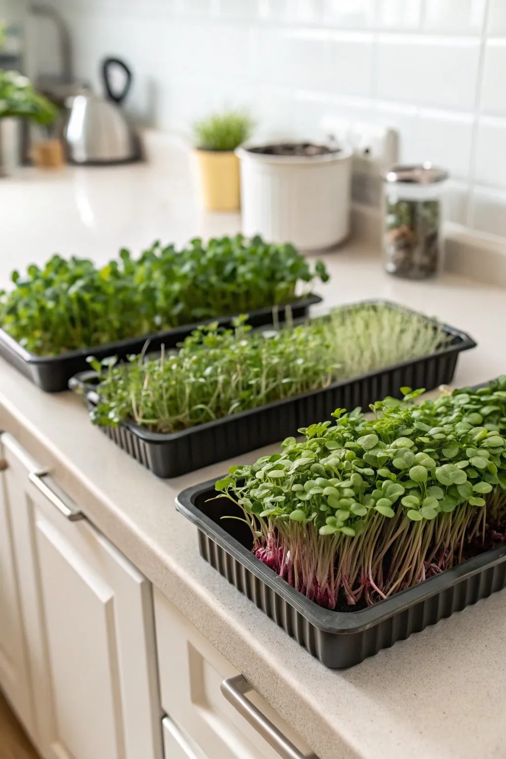 Make your kitchen work for you by setting up a small garden on your countertop. Quick-growing microgreens thrive here and are perfect for garnish.