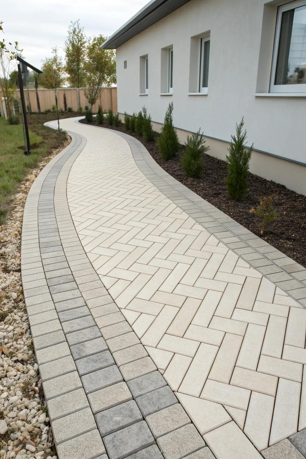 Experiment with different paver patterns like herringbone or basketweave to add visual interest. These designs are a favorite in my workshops for their ability to transform a simple path into an artistic feature.