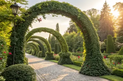Transform your garden entrance with an arched ivy topiary, creating a grand and inviting gateway. I’ve seen how this idea frames a path beautifully, welcoming visitors into a lush retreat.