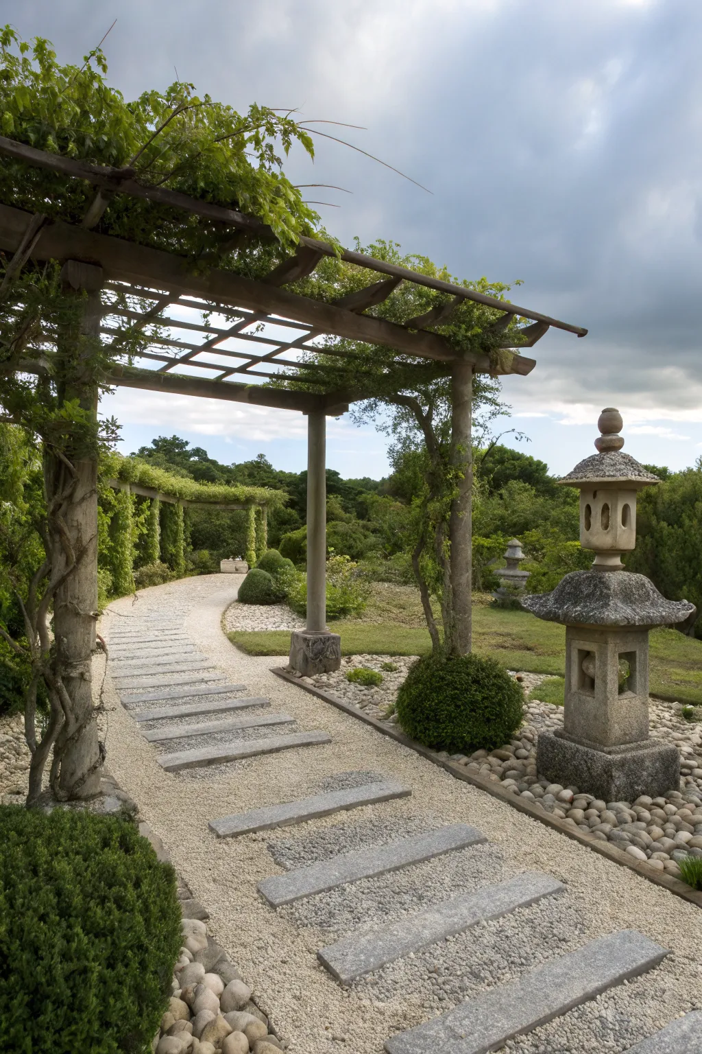 Integrate your pergola into a Zen garden with gravel paths and stone features to promote meditation. I love how this setup encourages a sense of calm and reflection in any space.
