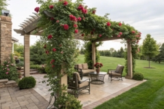 Let wisteria cascade over your pergola for a truly breathtaking display. Its fragrant blooms are a favorite among my clients and add a romantic touch.