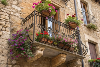 Imagine stepping into a scene from a fairy tale with a Juliet balcony wrapped in lush greenery and vibrant blooms. I once helped a client create this dreamy look with cascading petunias and ivy, and it transformed their space into a verdant paradise.