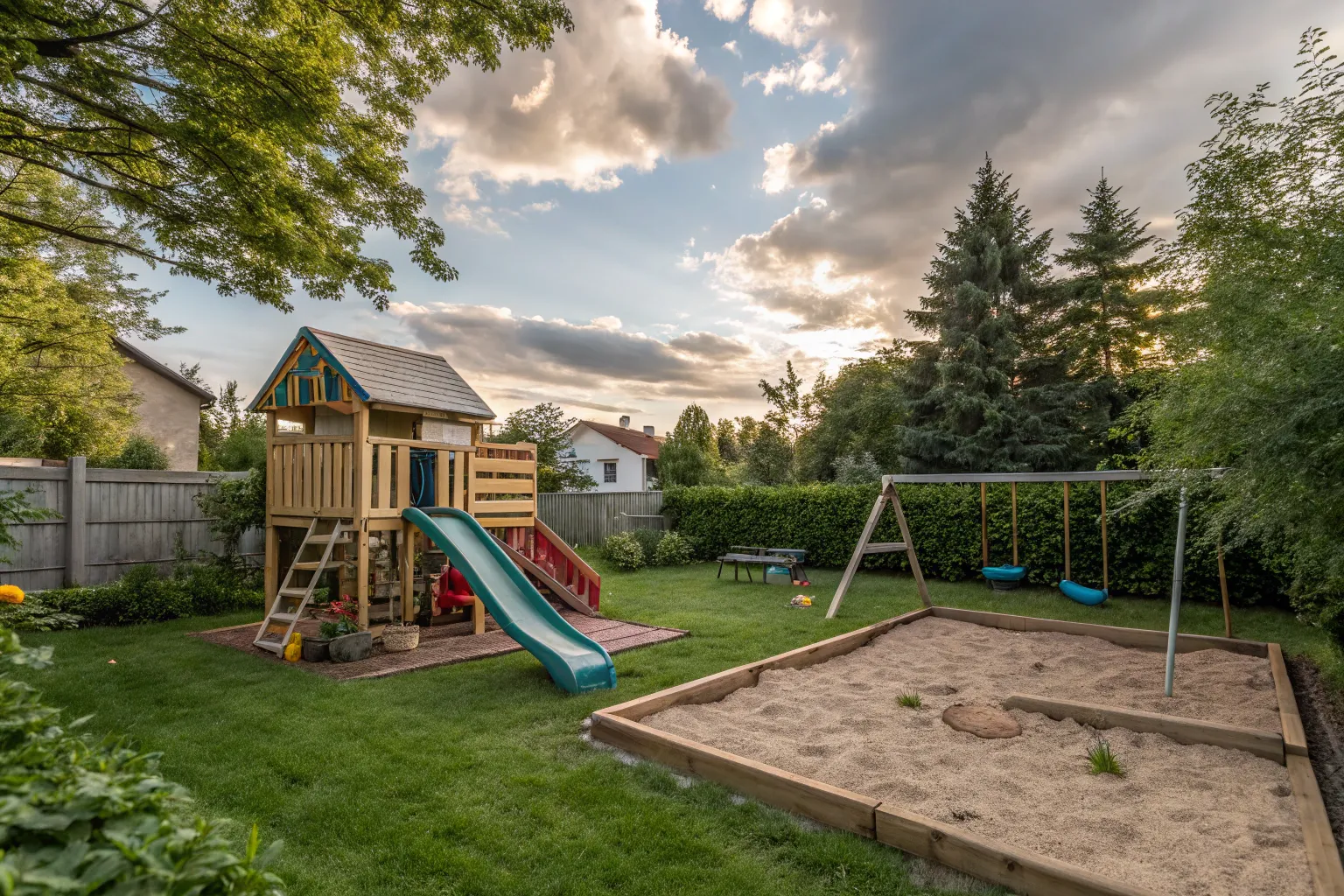 Incorporate a natural sandbox using a wooden frame and soft sand. It’s a simple yet effective way to encourage tactile play, and the one I set up in my own backyard is a huge hit with neighborhood kids!