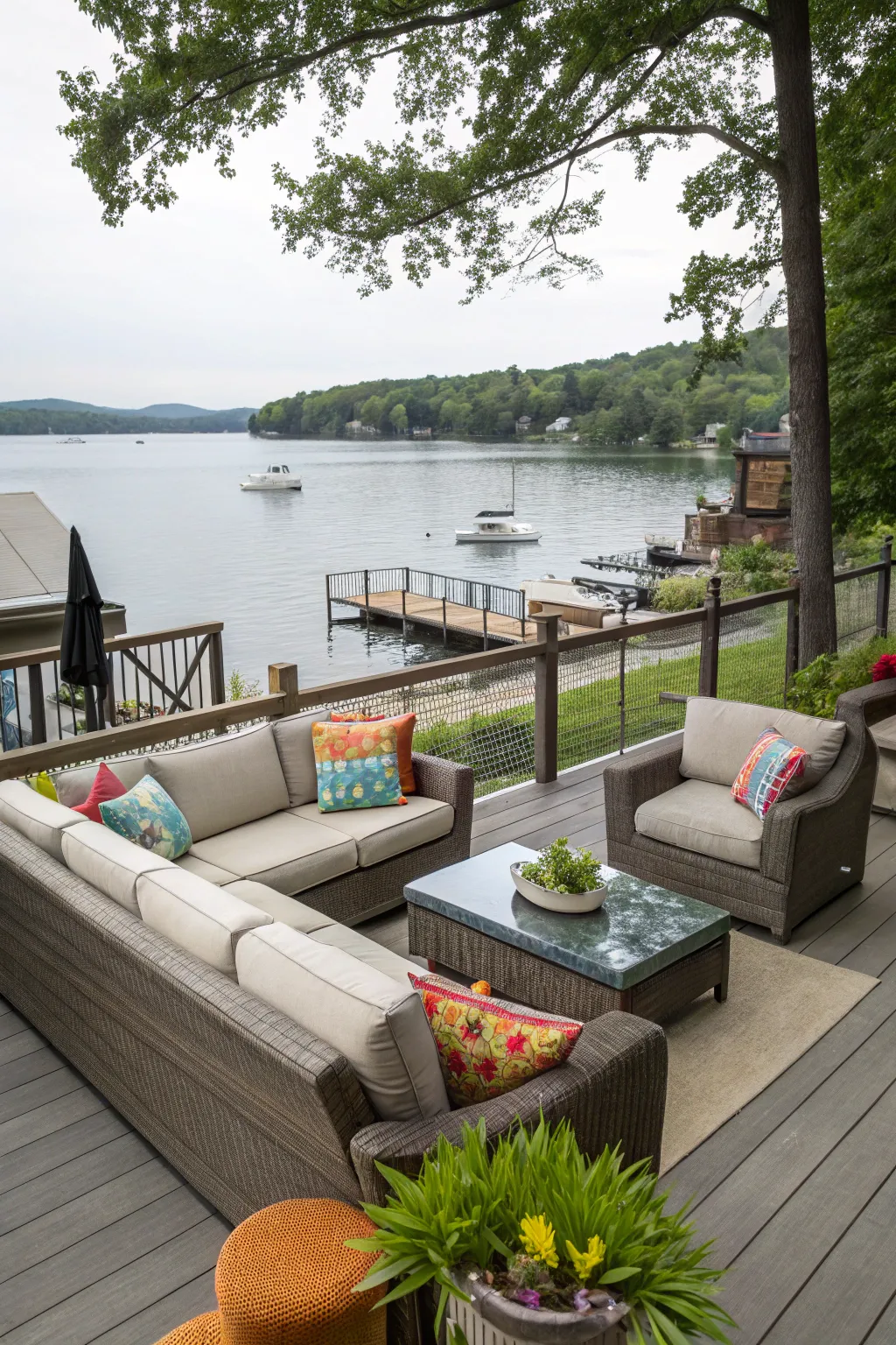 Investing in comfortable outdoor furniture is a game-changer. I always recommend weather-resistant pieces with plush cushions for those lazy afternoons by the water.
