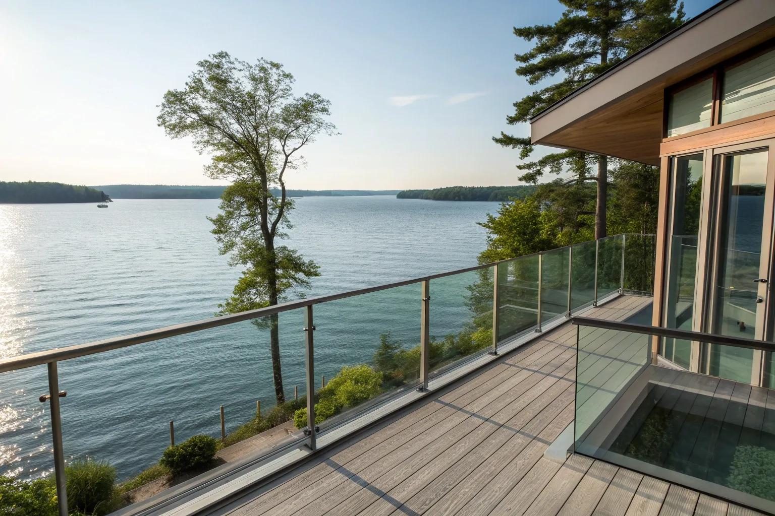 Glass panel railings are your best friend when you want to keep those stunning lake views uninterrupted. From my experience with clients, these panels create a seamless look that feels luxurious yet inviting.