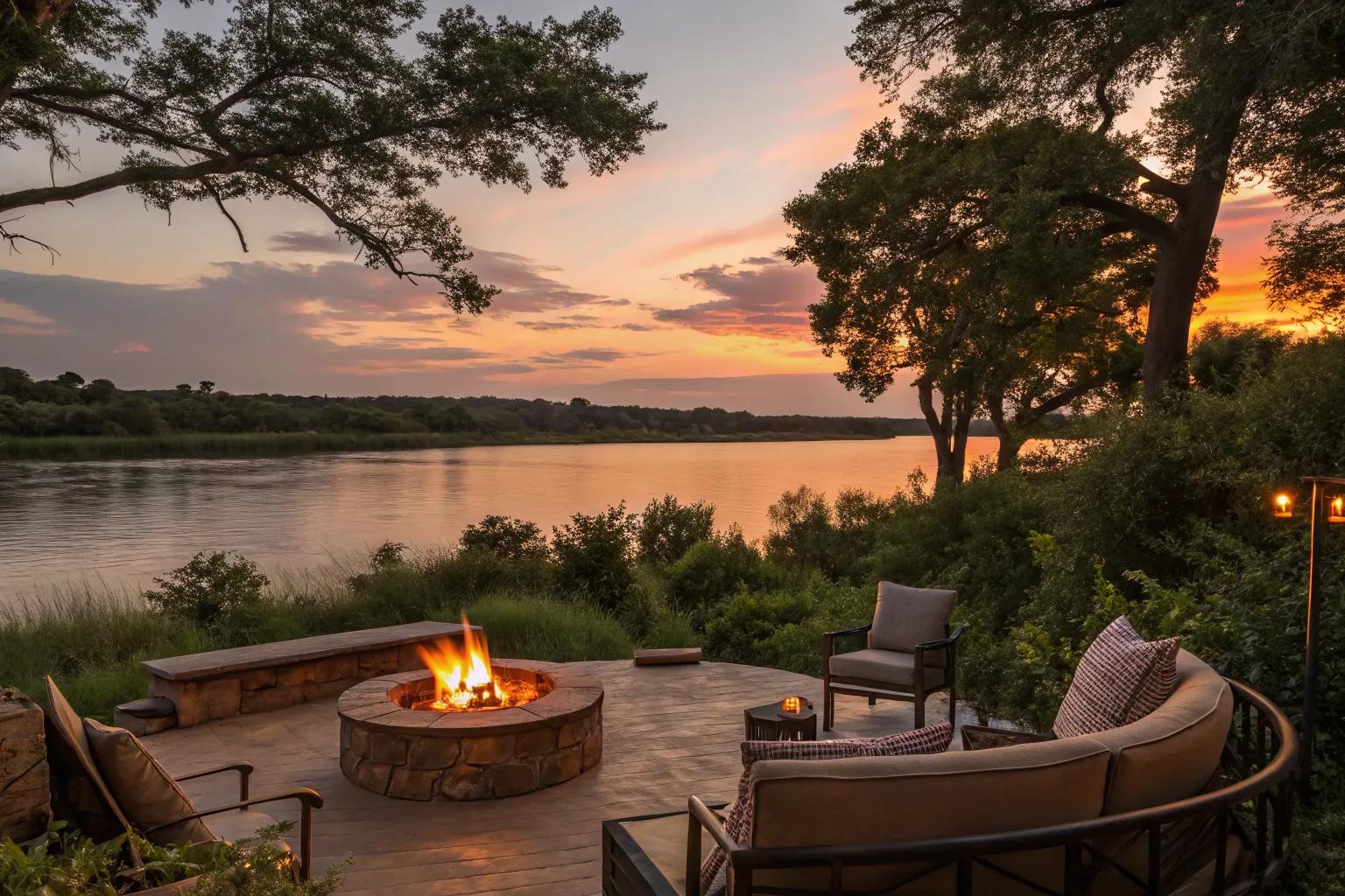 Position your fire pit right by the waterfront for an unbeatable view. There’s something magical about the fire’s reflection dancing on the lake’s surface.
