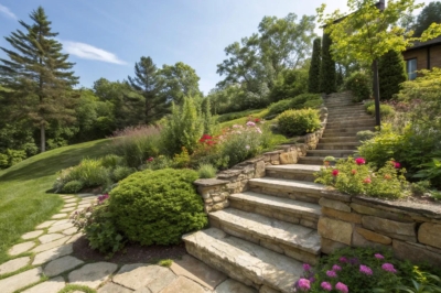 Natural stone stairs bring a timeless beauty and effortlessly merge with the surrounding landscape. I’ve seen clients fall in love with the way these steps add a touch of elegance to their gardens.