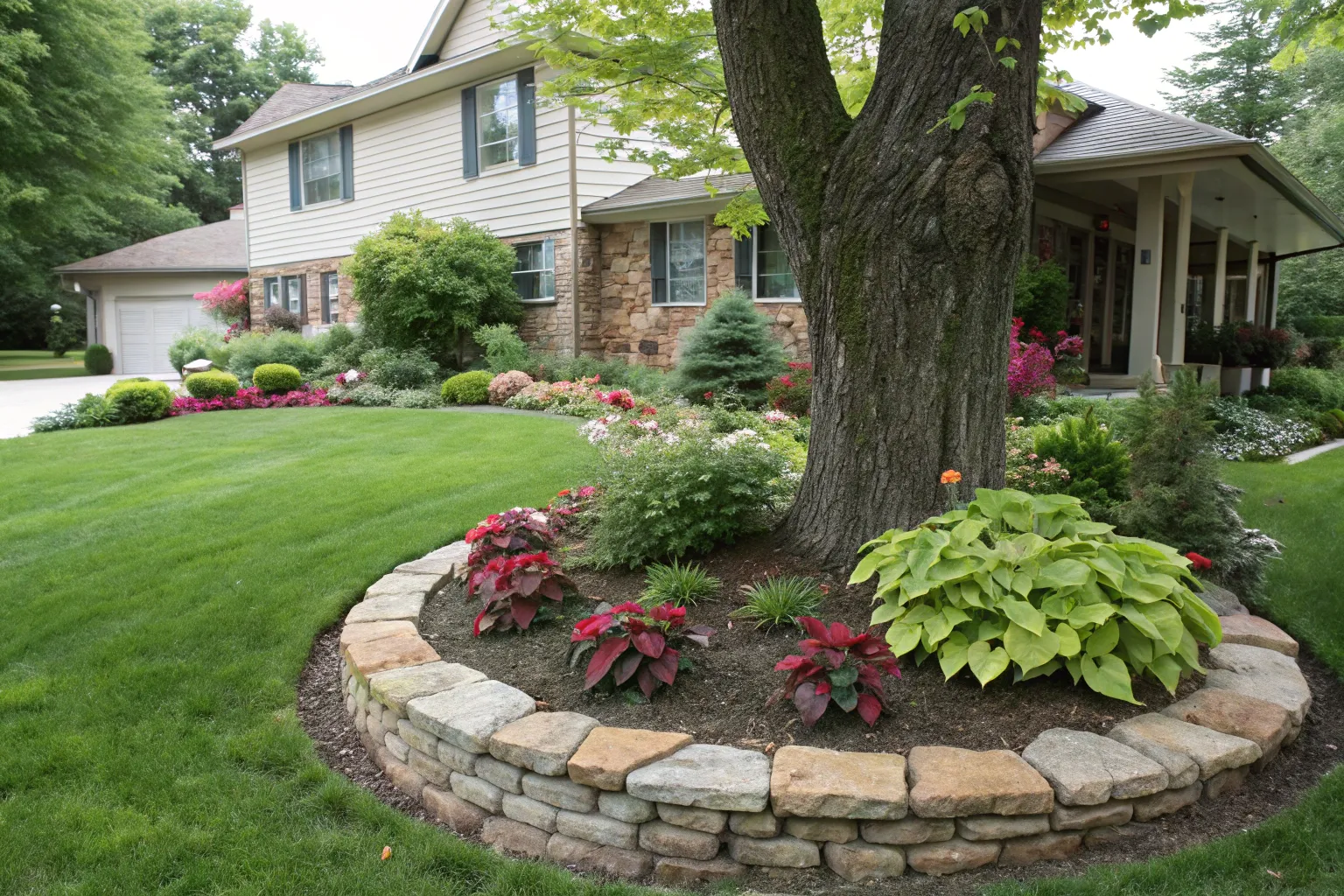 Spread a thick layer of mulch around your tree for a tidy, low-maintenance option. This is a go-to for homeowners who want both beauty and practicality.