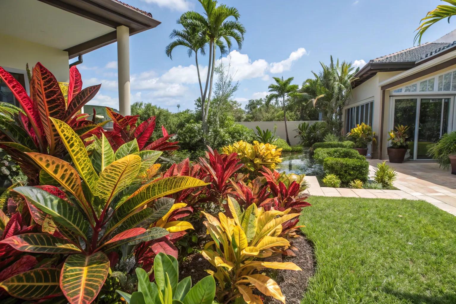 Transform your backyard into a tropical retreat by clustering crotons with other lush foliage. This setup offers a private oasis where you can unwind and enjoy the vibrant colors.