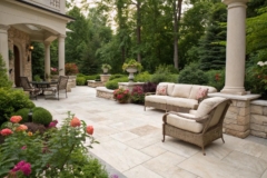 Opt for a rustic style by using rough-hewn limestone that blends naturally with the environment. It’s a hit with clients who prefer a cozy, country feel.