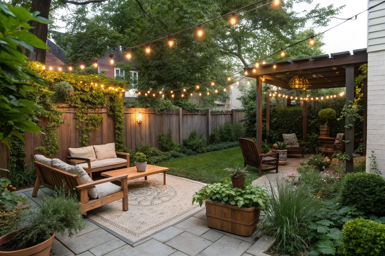 - Hanging String Lights: Illuminate your backyard with enchanting string lights for a cozy, inviting atmosphere.