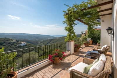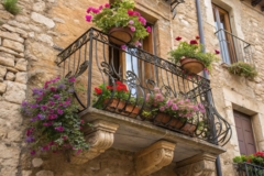 Wrought iron furniture is a staple on Mediterranean balconies, offering both durability and elegance. A couple of cushioned chairs can transform your space into a cozy retreat.