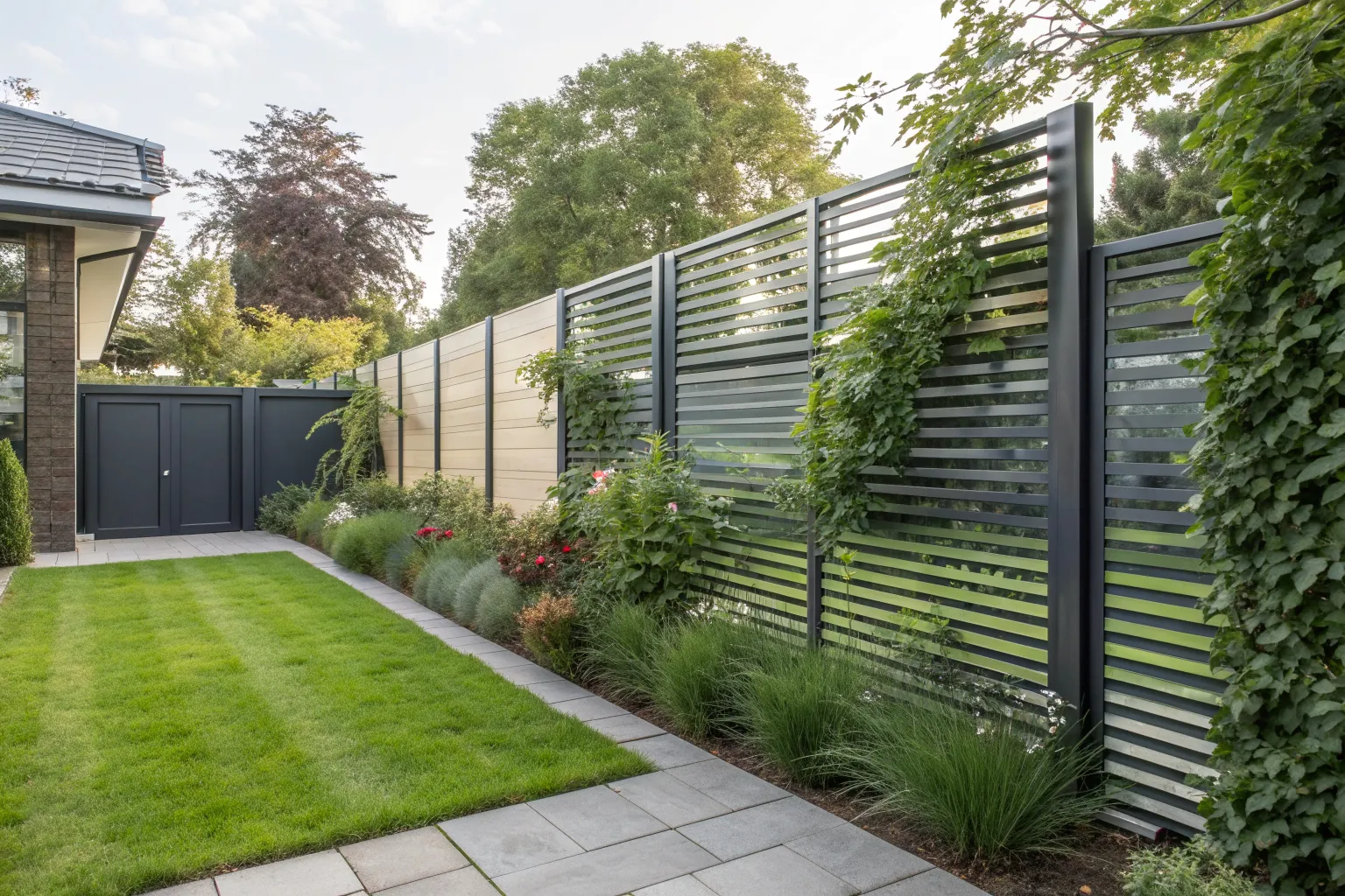 For fans of minimalism, a clean-lined metal fence offers a perfect solution. This style is all about simplicity and function.
