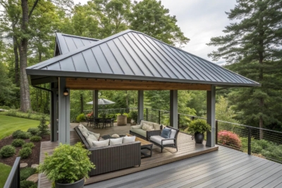 A reflective metal roof can help keep your deck cool and energy-efficient. I’ve recommended this to clients in warmer climates for its practical benefits.