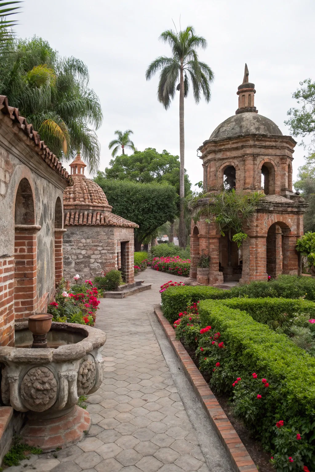 Enhance your garden’s structure with brick and stone work. These materials provide a traditional look that complements the Mexican garden style beautifully.