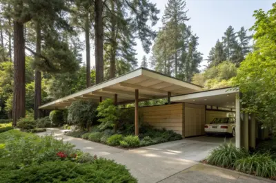 Use sustainable materials for an eco-friendly carport that aligns with mid-century principles. It’s a great way to honor the environment while achieving a timeless look.